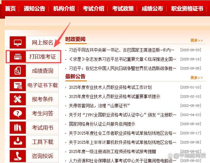 一、登录官网:访问中国人事考试网(https://sl.pidiqi.com/RnaMBb),点击首页【准考证打印】入口。