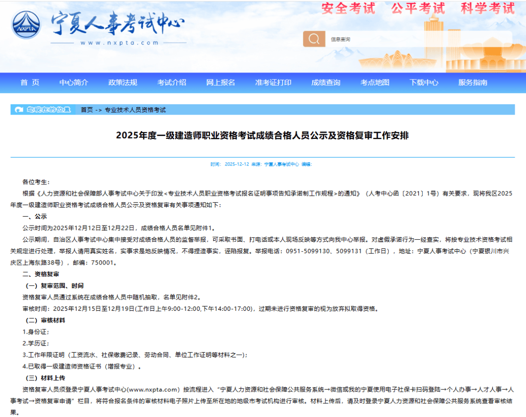 12月12日,宁夏人事考试中心发布2025年一级建造师考试合格人员公示名单(见附件1),全省共522人合格。相比去年全省合格人数上涨3.98%,增加20人。公告原文截图如下: